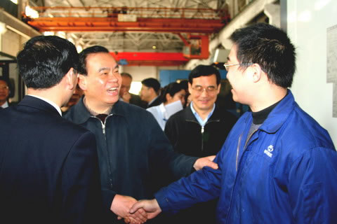 呂省長在精機(jī)公司加工車間時,與精機(jī)公司經(jīng)理潘順昌、副經(jīng)理杜建勝親切握手并交談,當(dāng)呂省長得知他們現(xiàn)是該公司的管理人員,并已在企業(yè)工作幾十年,欣喜地對周圍人員說,看上去那么年輕,卻有豐富的實踐經(jīng)驗,這是企業(yè)的寶貴財富。呂省長感慨地說,杭機(jī)集團(tuán)發(fā)展很快,原來廠區(qū)在環(huán)城東路時,就有近二千名員工,而現(xiàn)在人員減少,經(jīng)濟(jì)效益卻明顯提高,變化真大。呂省長指出,要充分認(rèn)識加快發(fā)展裝備制造業(yè)的重要性和緊迫性,進(jìn)一步加快發(fā)展裝備制造業(yè),推動產(chǎn)業(yè)結(jié)構(gòu)優(yōu)化升級和經(jīng)濟(jì)增長方式轉(zhuǎn)變。