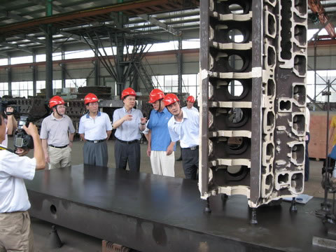 圖為陳敏爾常務(wù)副省長(zhǎng)在集團(tuán)董事長(zhǎng)朱金根、副總方毅和杭機(jī)鑄造總經(jīng)理鄭金濤陪同下參觀鑄件成品車間現(xiàn)場(chǎng)。
