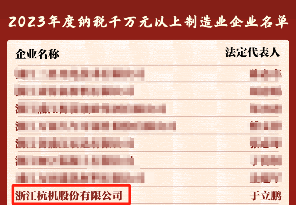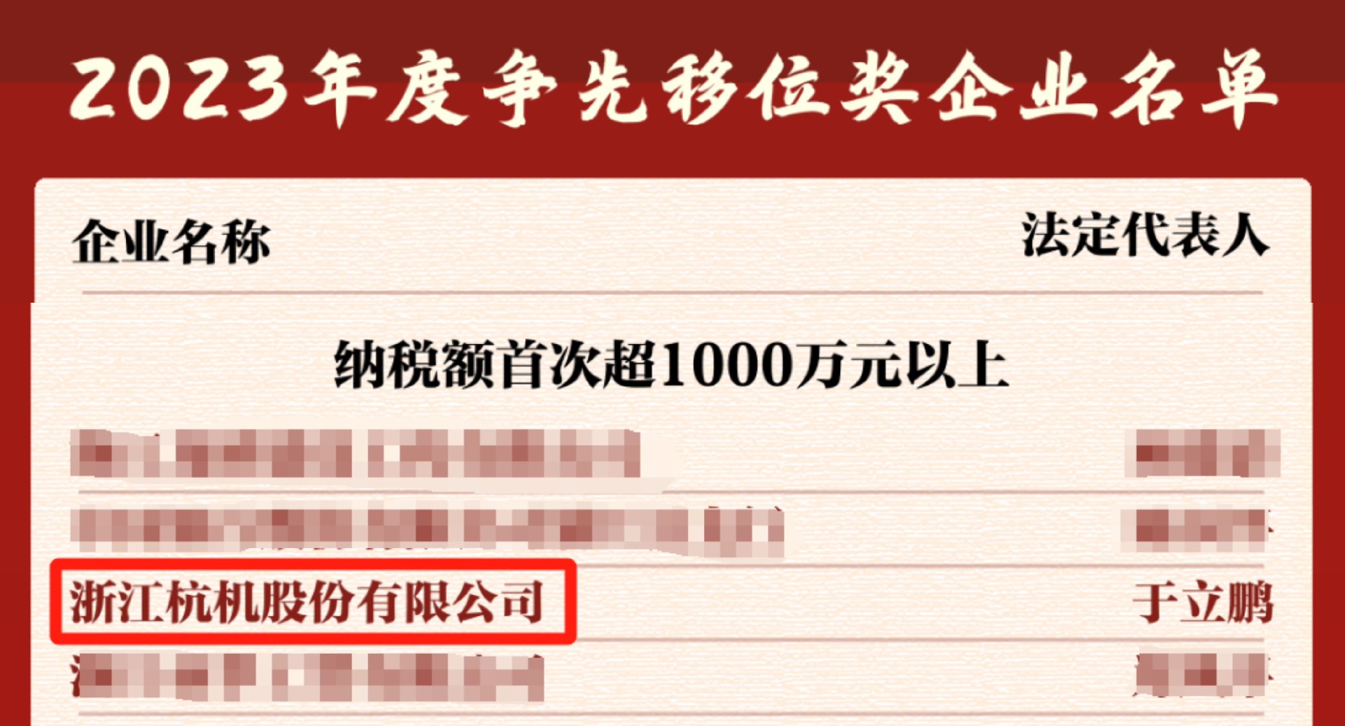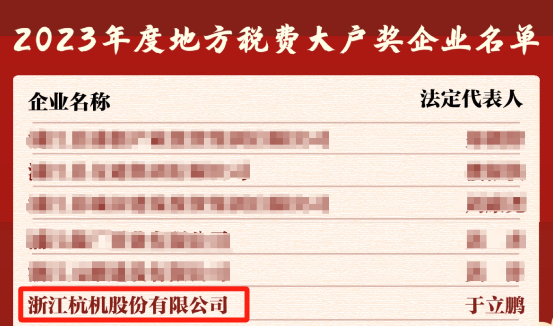 今天下午,浦江發(fā)布2023年度納稅大戶榮譽(yù)榜單,浙江杭機(jī)股份有限公司多次上榜,榮獲多重獎項。