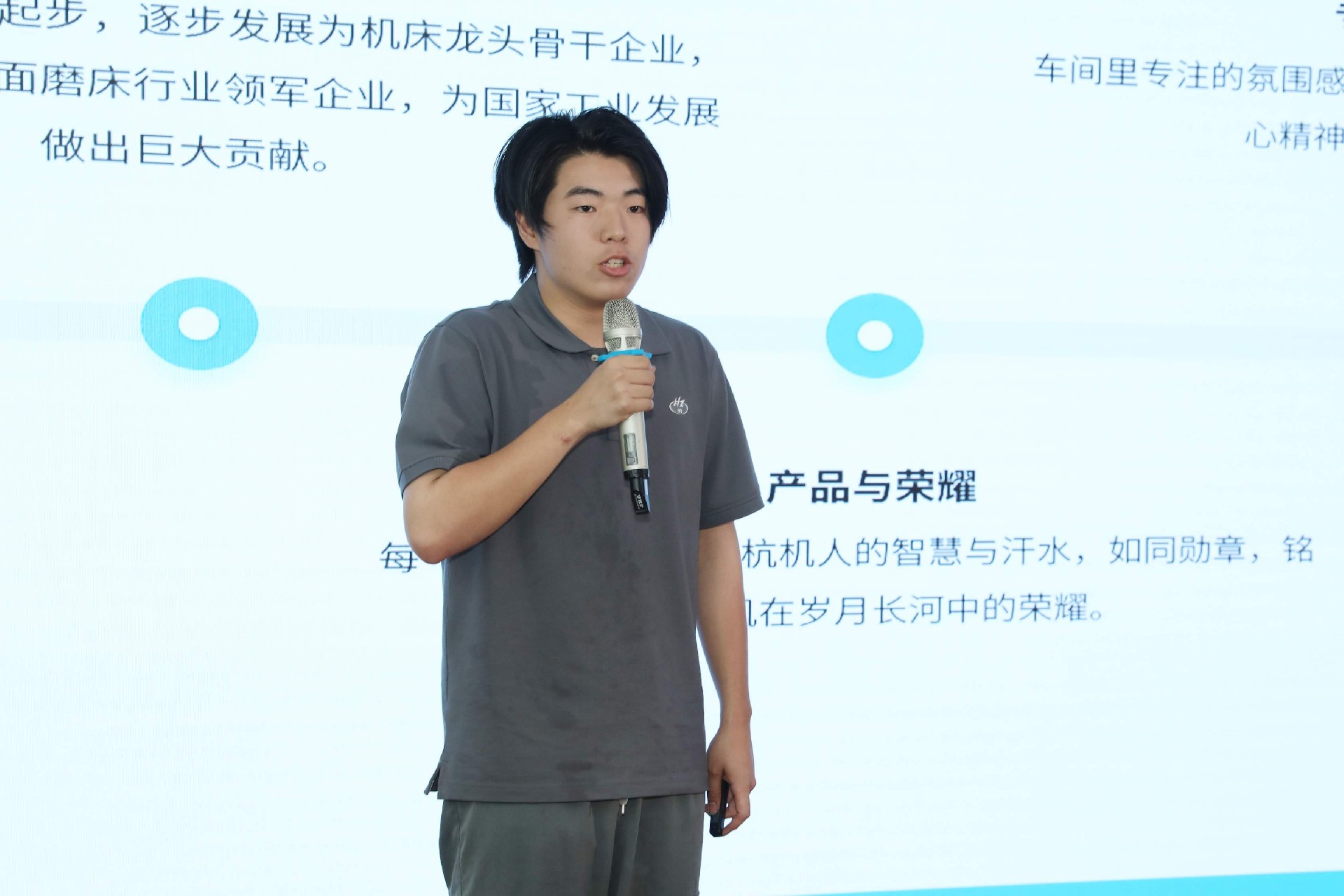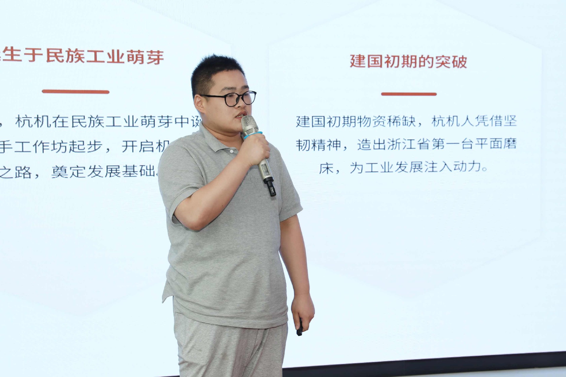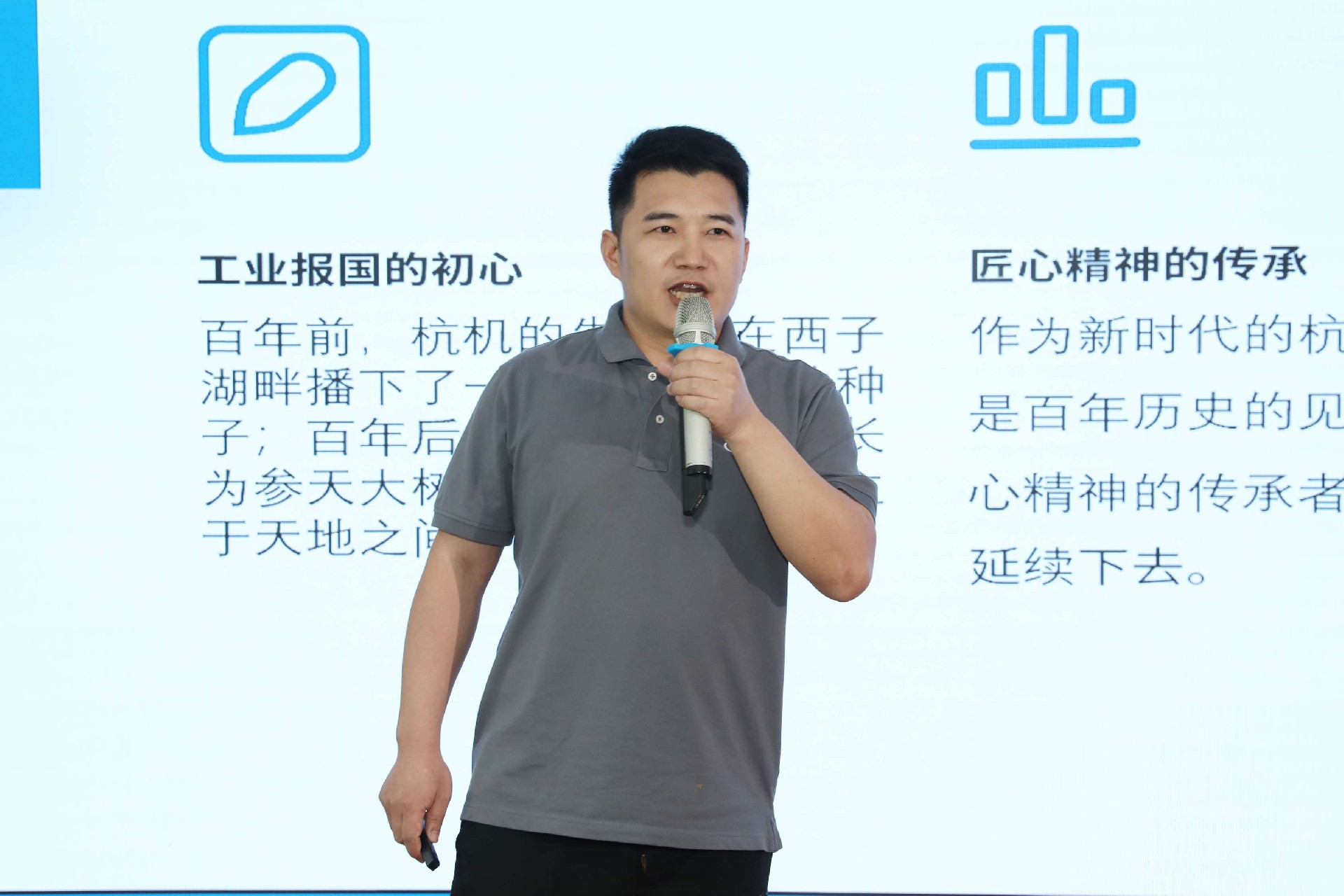 決賽現(xiàn)場(chǎng),16名來(lái)自不同崗位的參賽選手依次登臺(tái)。他們中既有扎根車間三十載的老技工,也有青年研發(fā)工程師,更有新入職就感受到滿滿杭機(jī)力量的新員工。演講內(nèi)容緊扣“匠心傳承”“智造突圍”“黨員先鋒”等關(guān)鍵詞,配合多媒體視聽(tīng)呈現(xiàn),引發(fā)陣陣掌聲。