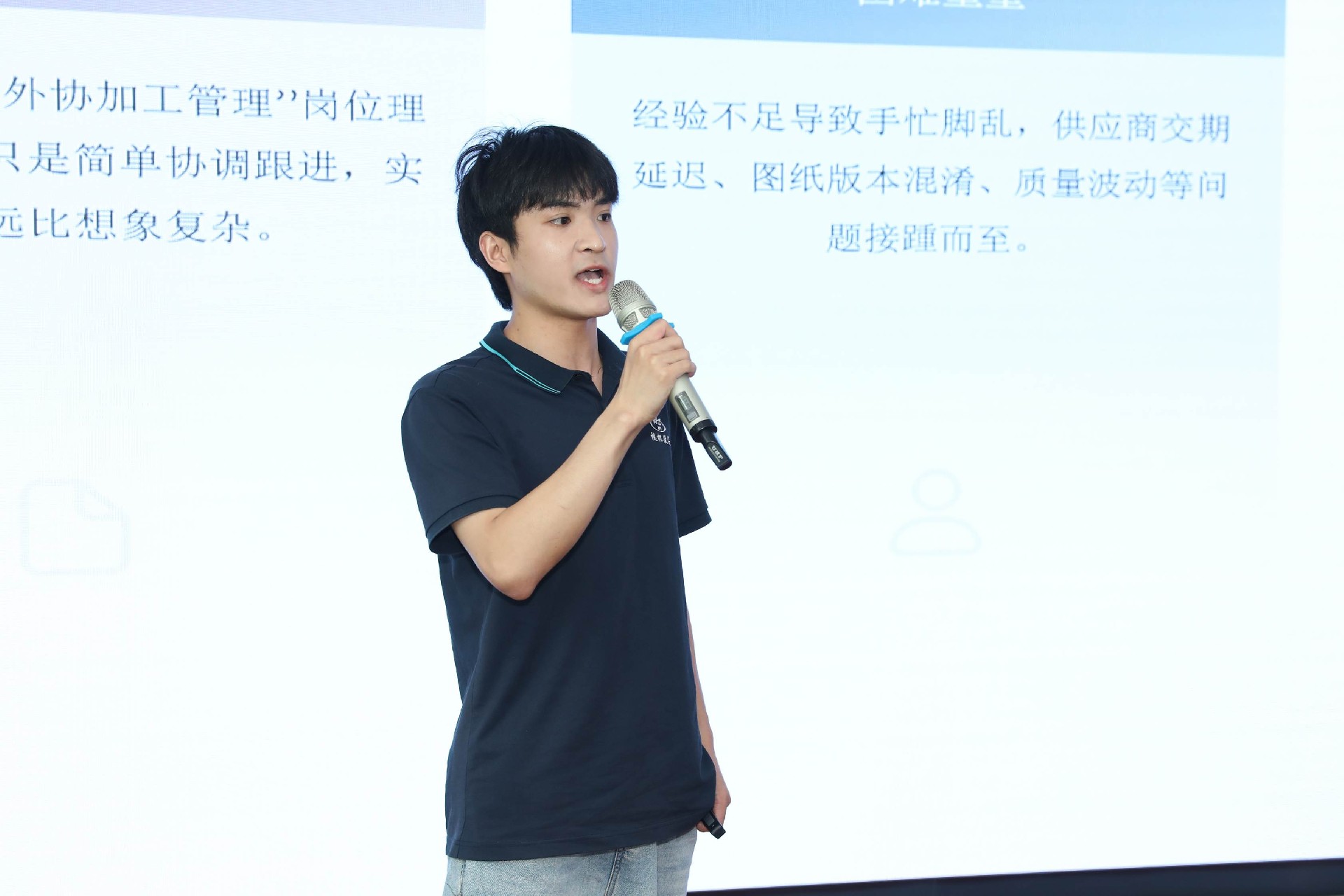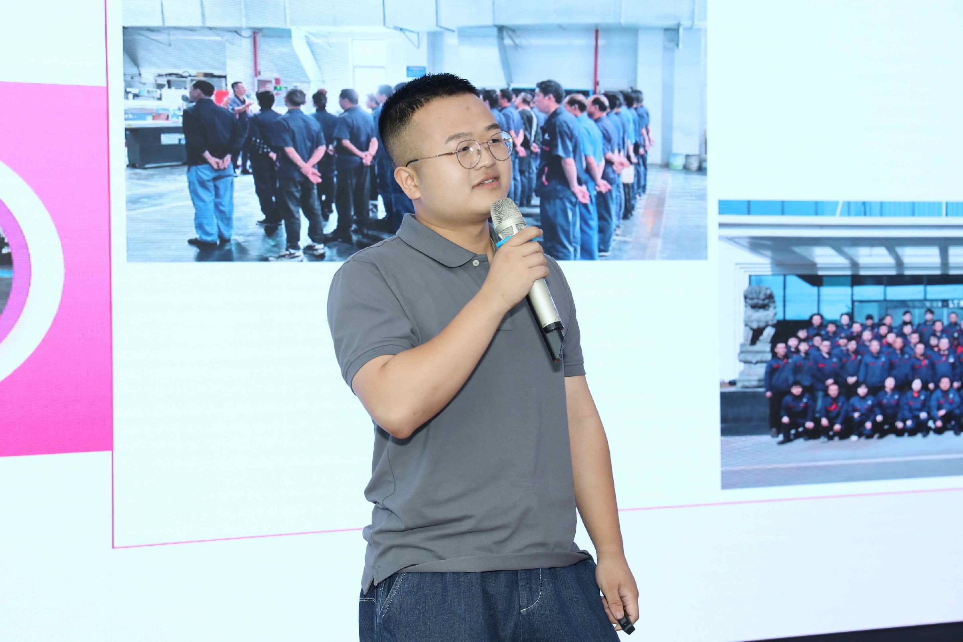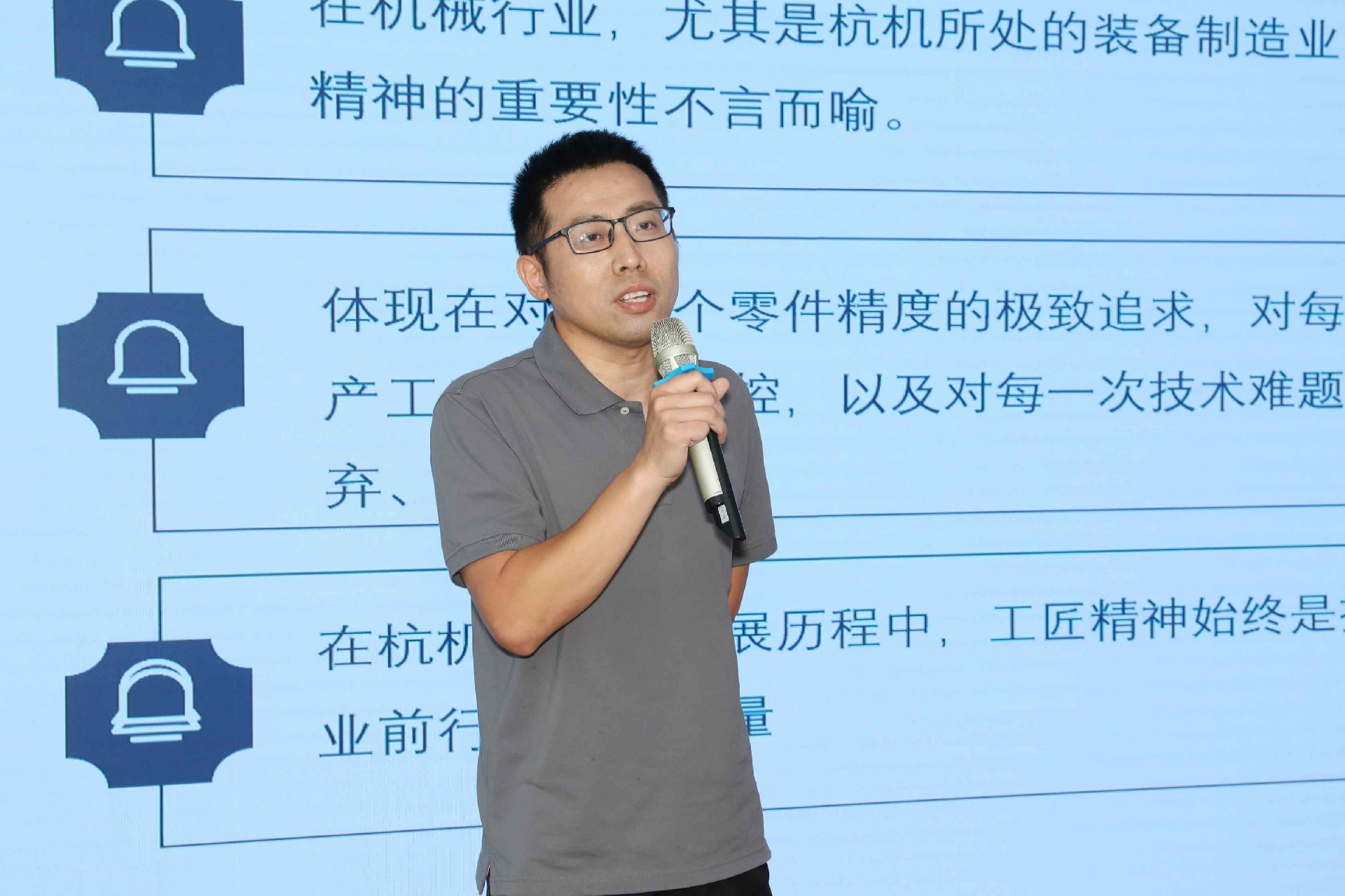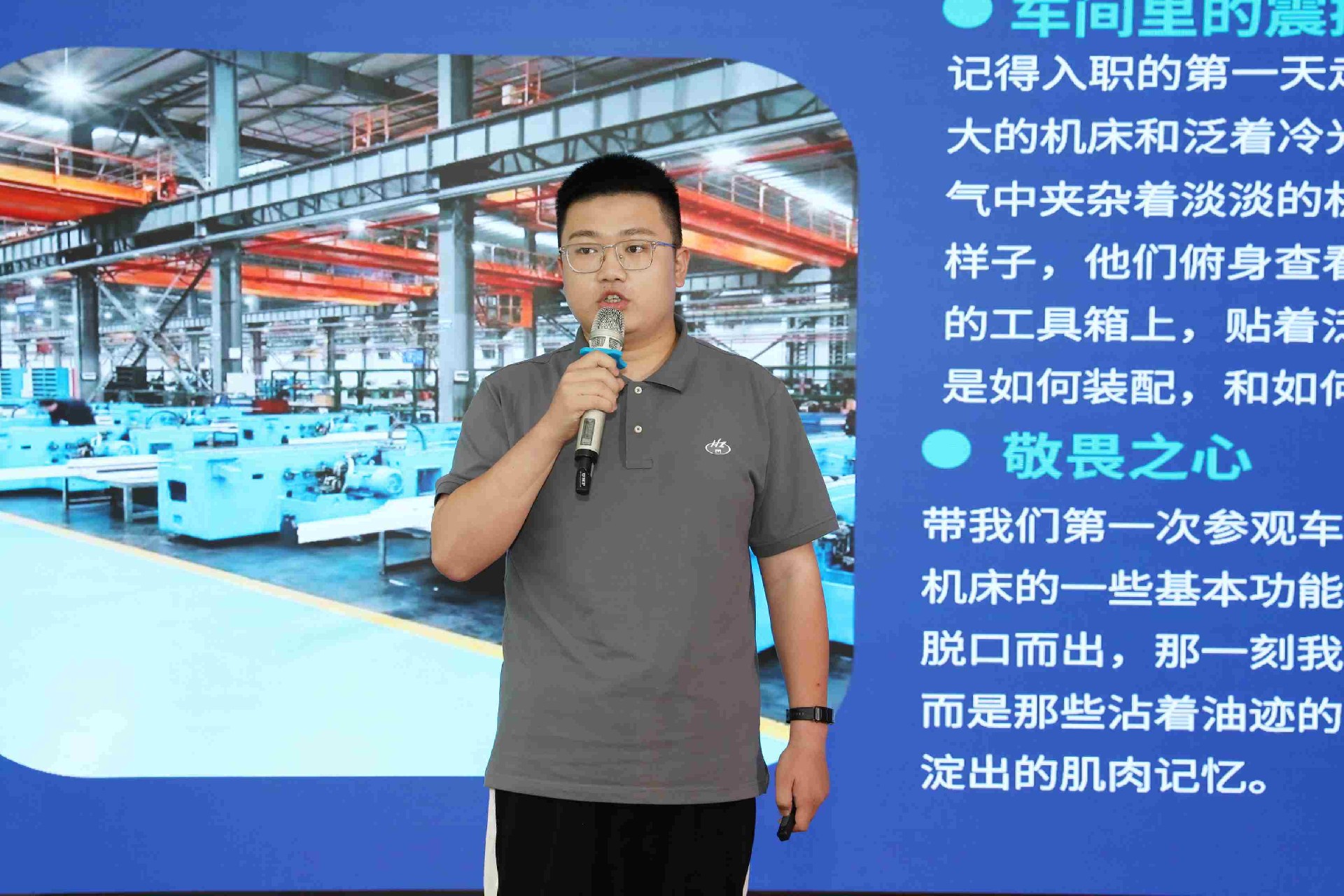 決賽現(xiàn)場(chǎng),16名來(lái)自不同崗位的參賽選手依次登臺(tái)。他們中既有扎根車間三十載的老技工,也有青年研發(fā)工程師,更有新入職就感受到滿滿杭機(jī)力量的新員工。演講內(nèi)容緊扣“匠心傳承”“智造突圍”“黨員先鋒”等關(guān)鍵詞,配合多媒體視聽(tīng)呈現(xiàn),引發(fā)陣陣掌聲。